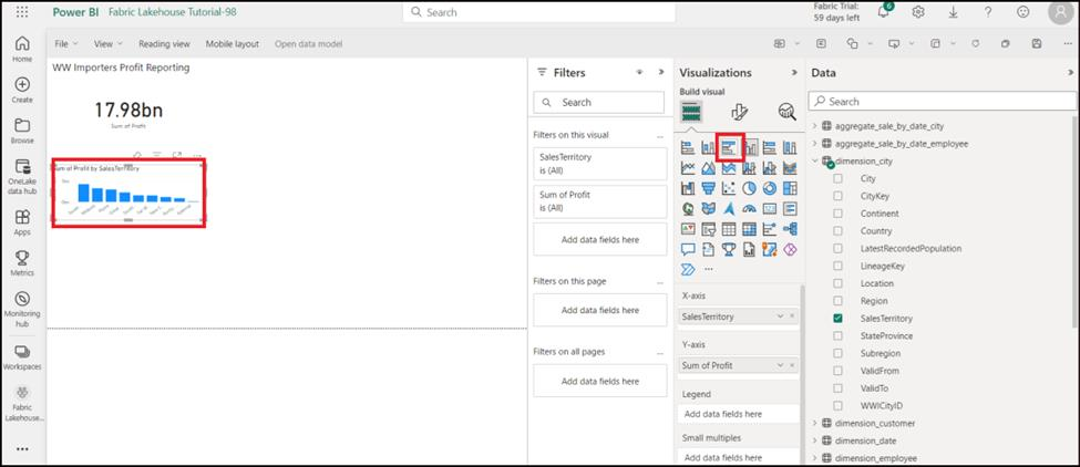 - On the Data pane, expand fact_sales and check the box next to Profit. This selection adds the field to the Y-axis.